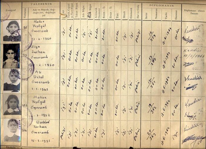 4 Hatice Yeşilgül 162 08.07.1952 Ömeranlı 19/362 13.06.1964 Aynı adla başka satır mevcut; kayıt numarasıyla ayrıştırıldı.