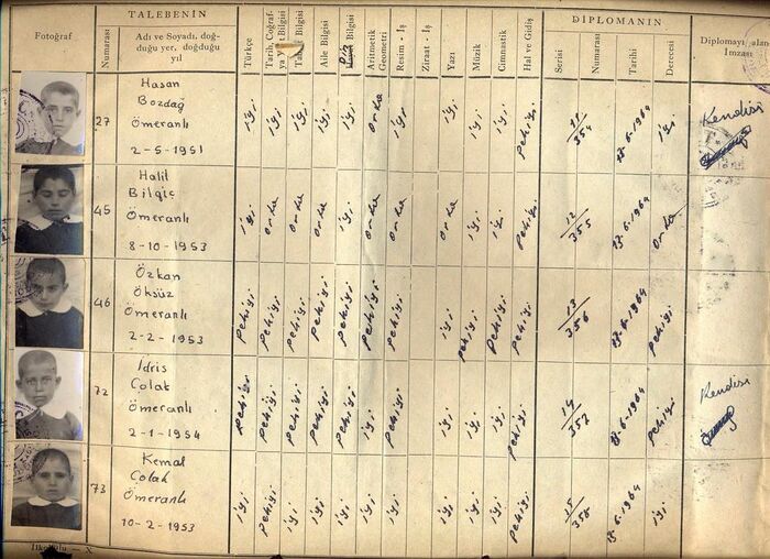 1 Hasan Bozdağ 27 02.05.1951 Ömeranlı 11/354 13.06.1964 Satır okunaklı; standart ilk okuma notu geçerlidir.