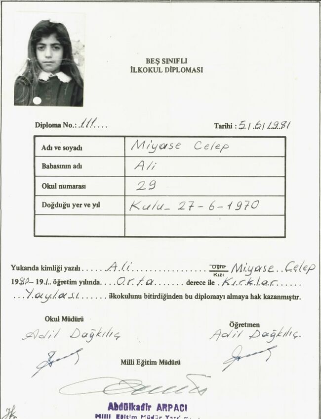 Bu sayfa, Miyase Çelep adına düzenlenmiş beş sınıflı ilkokul diploması görselinin arşiv kaydıdır.