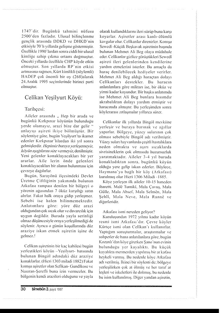 Çelikan Yeşilyurt Köyü hakkında 1997 tarihli dergi kupürü