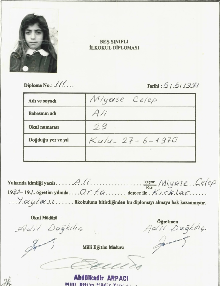 Bu sayfa, Belge/Miyase Çelep İlkokul Diploması (1981) belgesinden ayrıştırılmış kişi-bazlı öğrenci kaydıdır.