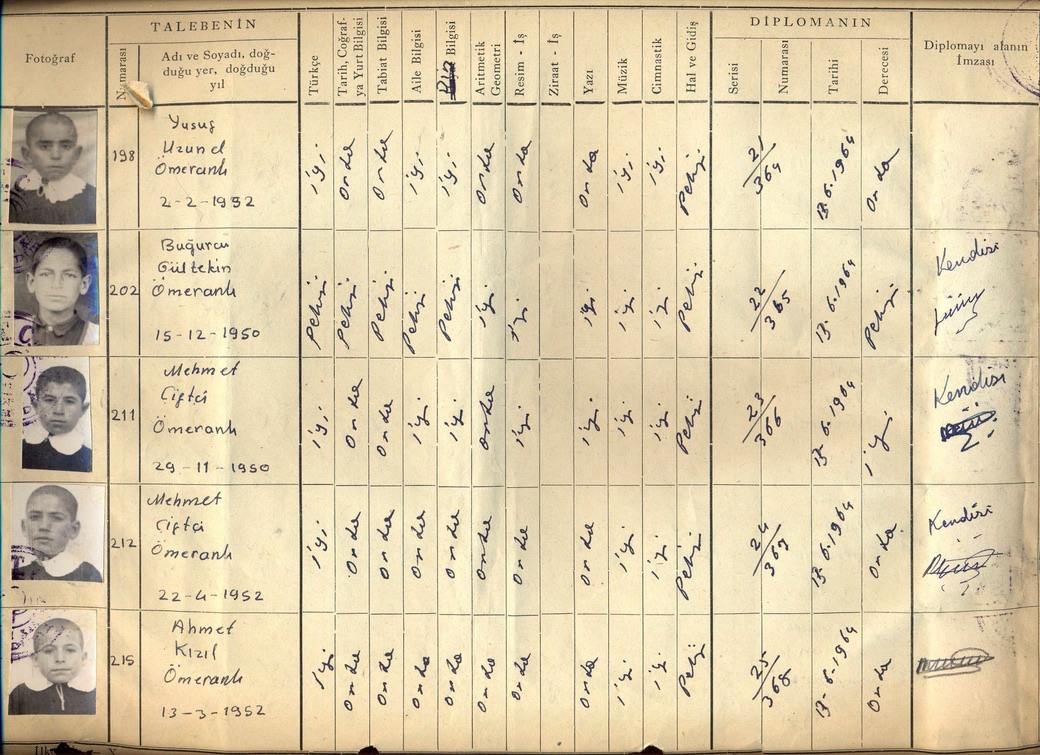 Bu sayfa, Belge/Öğrenci Diploma Çizelgesi (Ömeranlı, 1964 - Sayfa 3) içindeki ilgili satırdan ayrıştırılmış öğrenci kaydıdır.