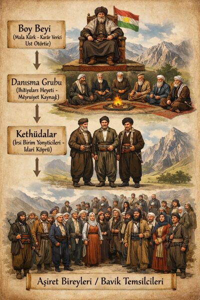 Bu yönetim modelinde "Kethüdalık" da irsi bir müessese olarak kurgulanmış olup; kethüdalar ve ihtiyarlar heyeti (danışma grubu), Boy Beyi'nin seçiminde ve yönetim kararlarında belirleyici bir role sahiptir. Mala Kûrk, aşiretin iç hukukunu düzenleyen, devletle vergi ve iskân pazarlıklarını yürüten en üst mercii olarak kethüdalar üzerinde kesin bir otorite kurmuştur.