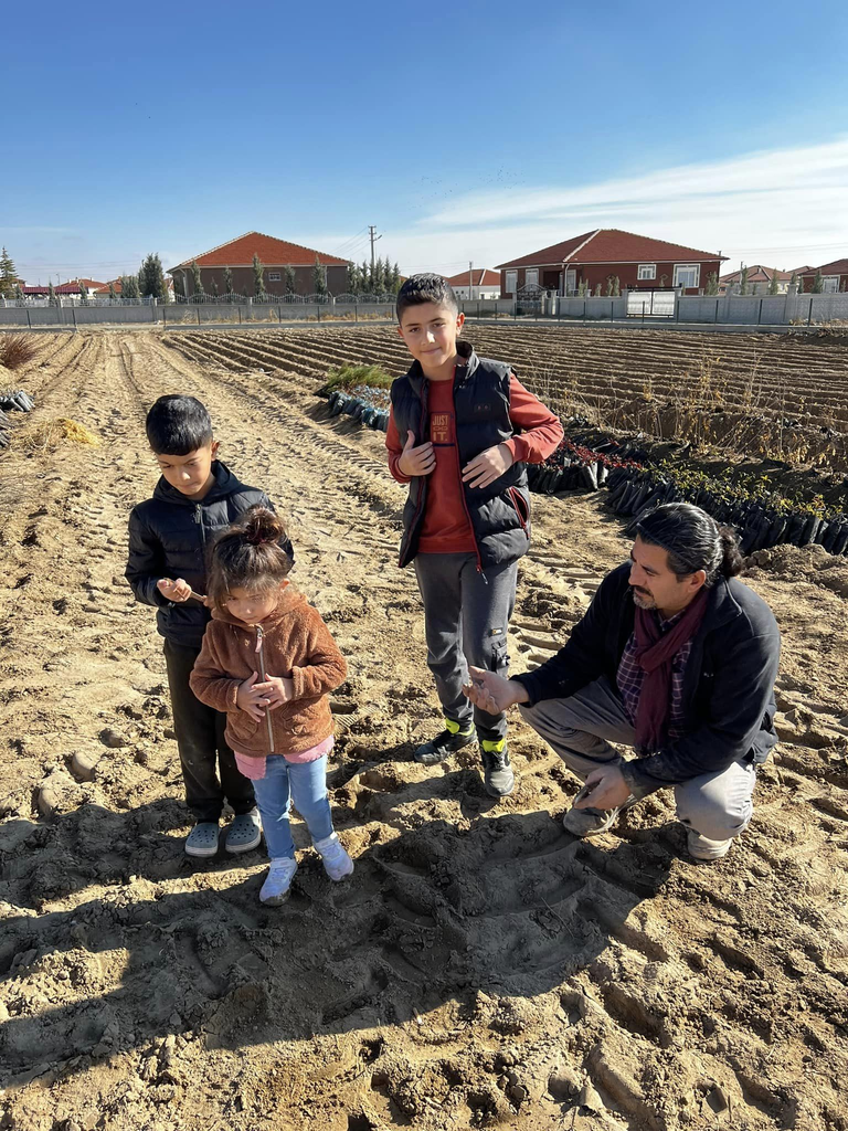 • 11/11/2022 — Çocuklarla Birlikte Dikim. Saha çalışmalarının en neşeli anları çocuklarla yapılan dikimlerde yaşandı. Minik eller fidanlarla buluşurken, toprağın kokusuna çocukların kahkahası karıştı. Her biri kendi diktiği ağacı sahiplenirken gözlerinde bir ormanın büyüdüğünü görmek mümkündü. Bu anlar, projenin yalnızca ağaç değil; geleceğe bilinç, sevgi ve sorumluluk eken bir yolculuk olduğunu bir kez daha hatırlattı.