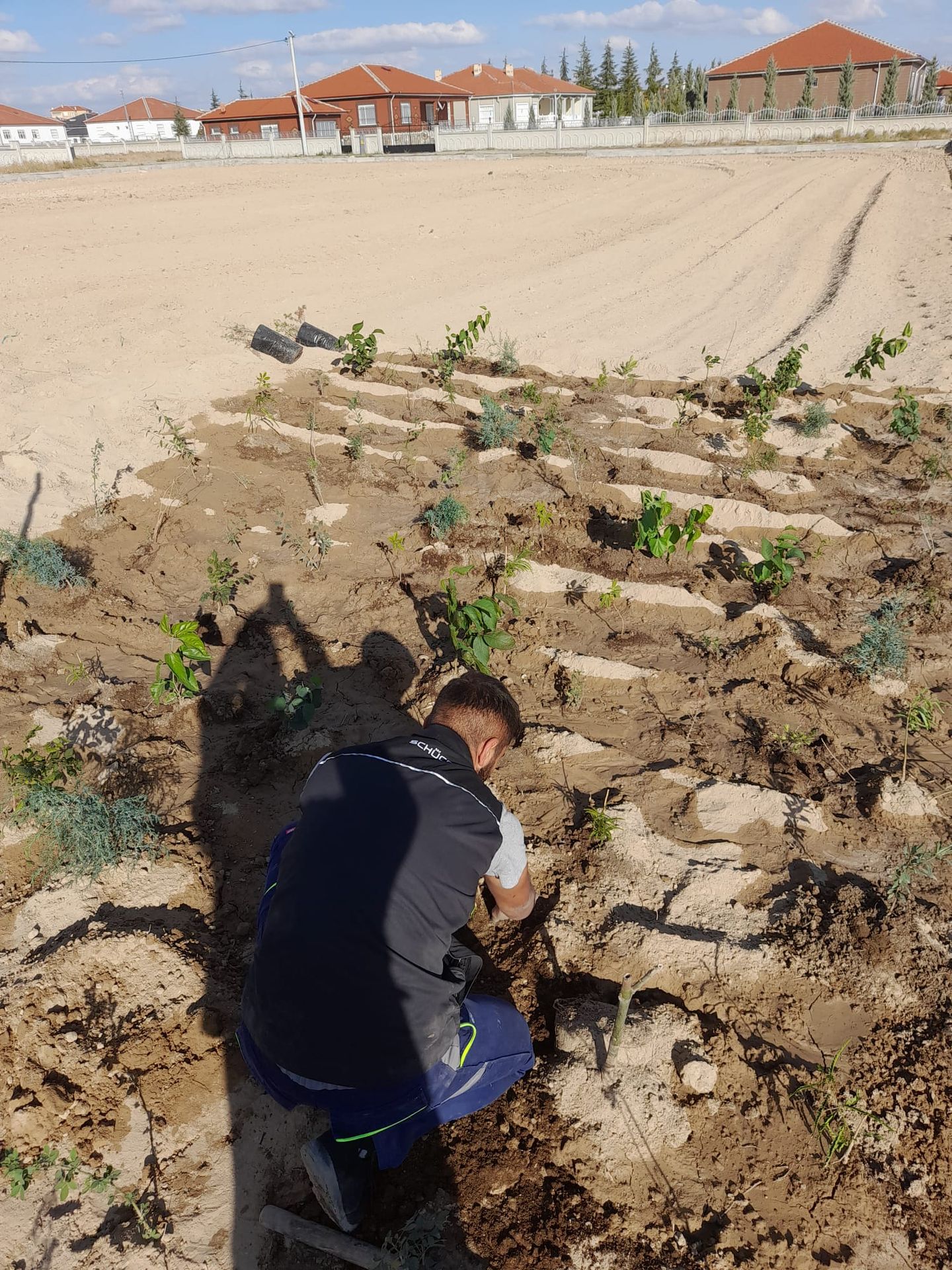• 21/10/2022 — Dikimlerin Başlaması. Toprak nefesini bulup alan hazır hâle geldikten sonra en heyecanlı aşamaya geçildi: dikim. Fidanlar bir bir toprağa kavuşurken saha, bozkırın ortasında sessizce filizlenen bir umuda dönüştü. Her dikim, geleceğe atılan küçük bir imza, çocuklarımız için bırakılan bir nefes, Ömeranlı’nın yarınlarına yazılan yeşil bir söz oldu.