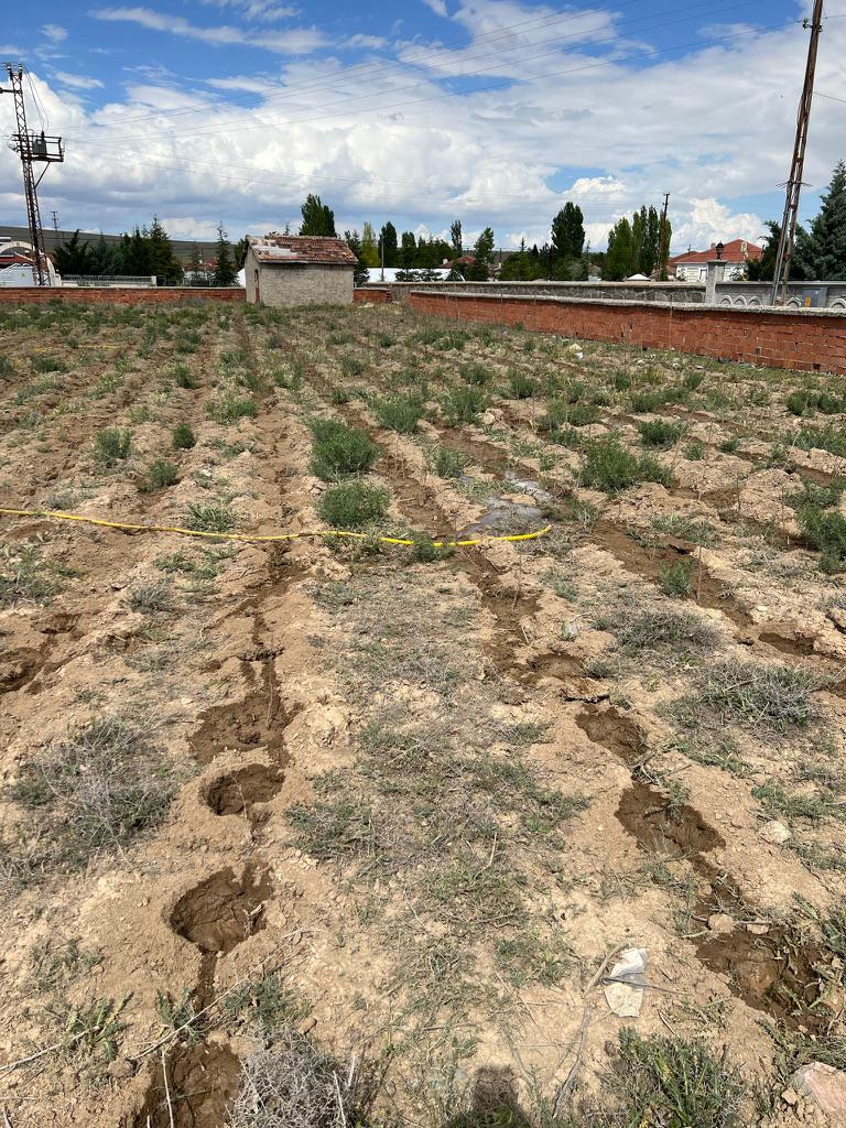 • Görsel, dikim hazırlığına ilişkin sahada açılmış çukurlar veya sıra izleri olduğunu düşündürmektedir.