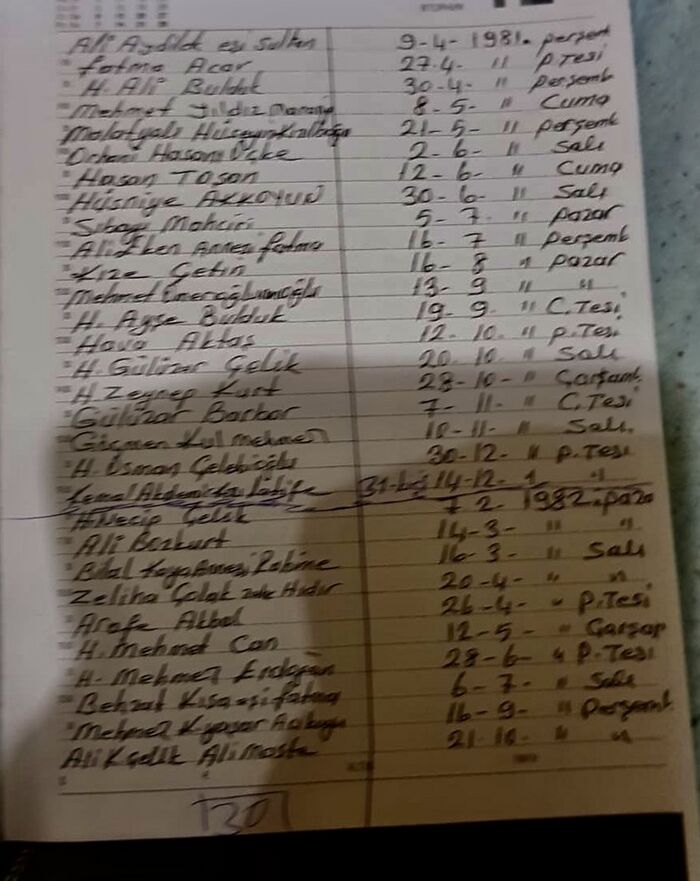 Ömeranlı ölüm tarihleri defteri, sayfa 34 (1981-1982).